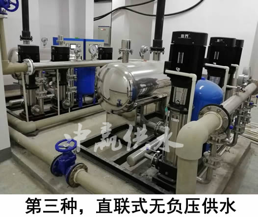 如果地下室沒有儲水池或不銹鋼水箱,而是直接通過中贏無負(fù)壓供水設(shè)備疊加市政管網(wǎng)已有壓力進(jìn)行加壓的,由于它是與自來水管道是串聯(lián)的,密封性非常好,所以不會產(chǎn)生二次污染,大家可以放心使用(自來水--無負(fù)壓設(shè)備--用戶)。第三種供水方式