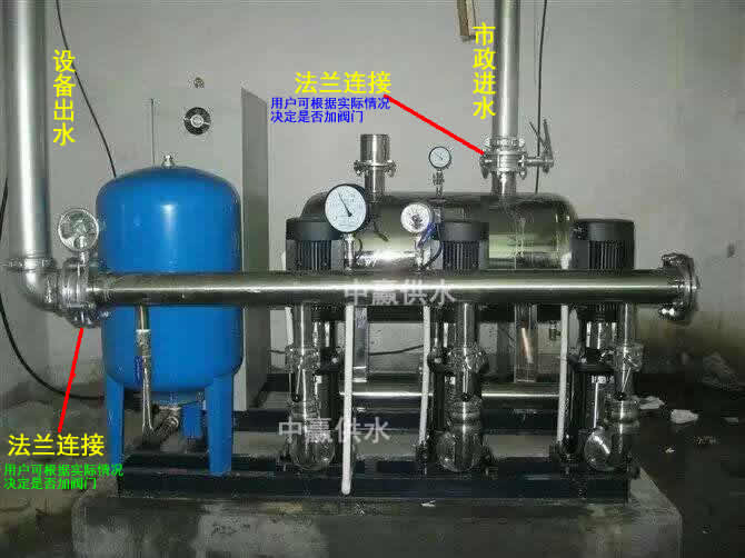 2、設(shè)備出水:恒壓設(shè)備出水法蘭對(duì)接小區(qū)管道的蘭法。